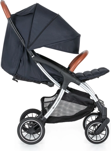 La poussette se conduit d’une seule main, dispose de roues avant entièrement pivotantes et d’un frein de stationnement centralisé pour un arrêt sécurisé. Les grandes roues avec suspension (20% caoutchouc, 80% EVA) lissent les aspérités et facilitent la conduite. Le panier inférieur pratique, d’une capacité de 3 kg et à accès aisé, accueille tout le nécessaire pour vos sorties.
