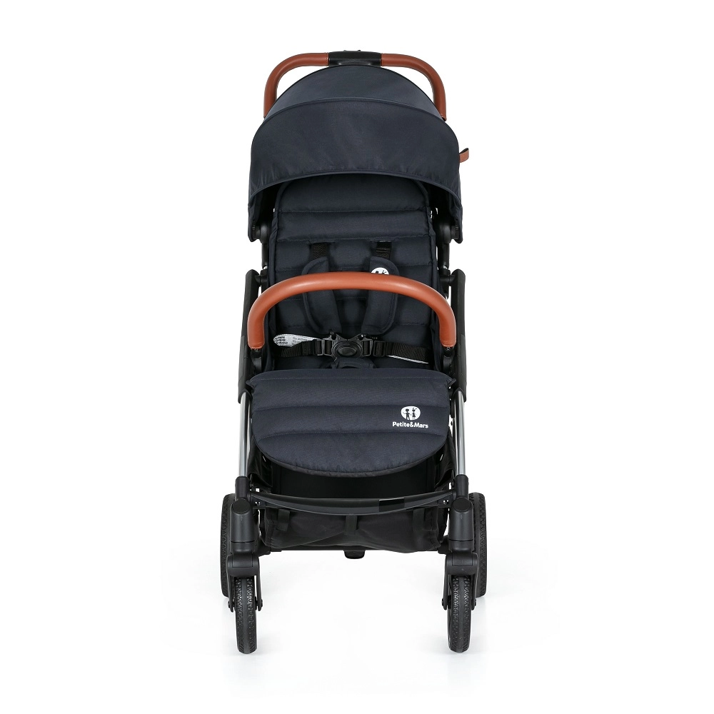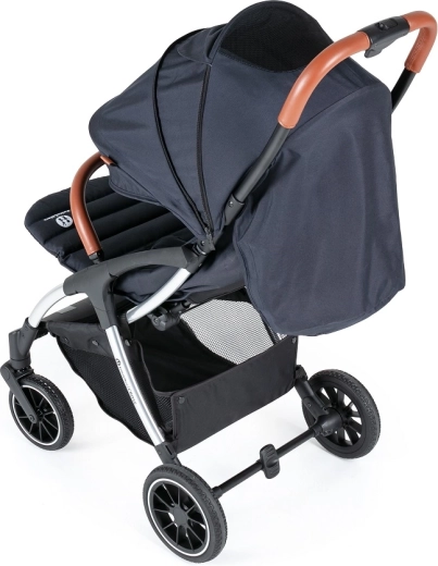 La poussette sportive légère et compacte PETITE&MARS Cross Anthracite Blue se déplie d’une seule main et, grâce à son mécanisme auto‑pliant, se plie toute seule et tient debout une fois pliée. Elle offre un siège spacieux et confortable avec inclinaison du dossier et du repose‑jambes, une capote extensible avec visière et un harnais de sécurité 5 points. Les grandes roues avec suspension roulent en douceur en ville comme au parc, tandis que le panier inférieur à accès facile accueille de petits achats. Convient aux enfants de 6 mois jusqu’à 22 kg.