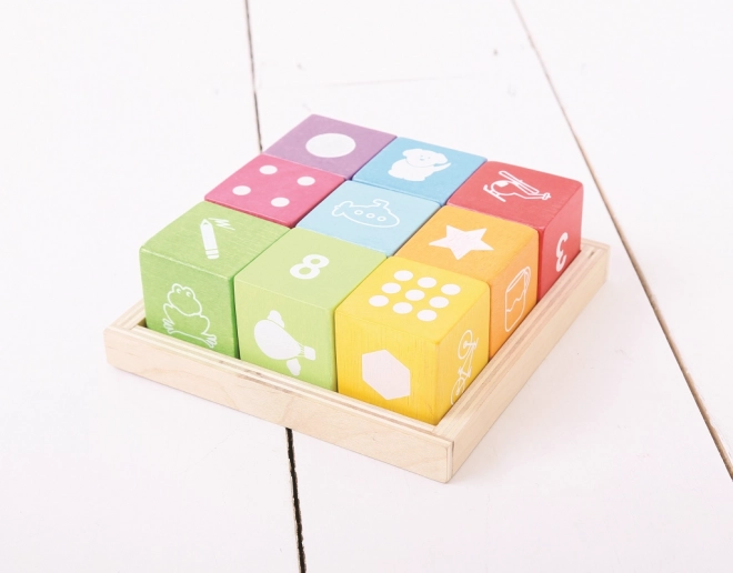 • Emballage pratique : 9 cubes + plateau en bois pour un rangement ordonné.
