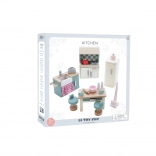 Une cuisine parfaite pour maison de poupées de Le Toy Van. Cet ensemble en bois magnifique comprend tout ce dont vous avez besoin pour une aventure culinaire miniature - évier, cuisinière, four, réfrigérateur et table avec chaises. Tout est fabriqué à la main à partir de matériaux durables.