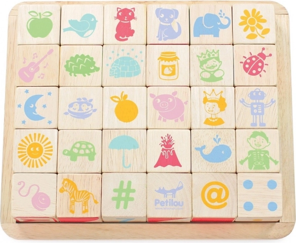 Ce set LE TOY VAN Petilou est un jouet éducatif idéal pour les enfants à partir de 12 mois. Chaque cube est unique, imprimé manuellement en sérigraphie et présente sur ses différentes faces des lettres, chiffres, formes, animaux et symboles. Grâce au bois d’hévéa robuste et aux peintures à base d’eau, les cubes sont durables, sûrs et agréables au toucher.