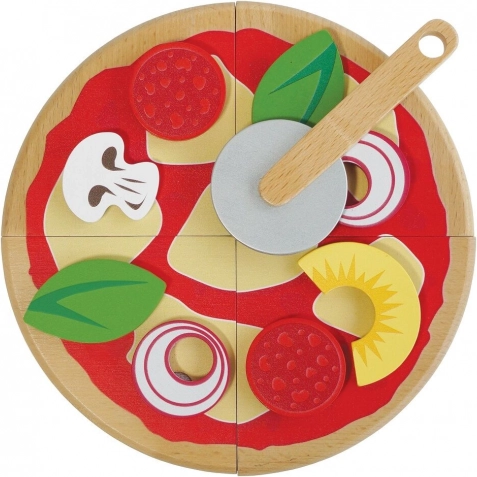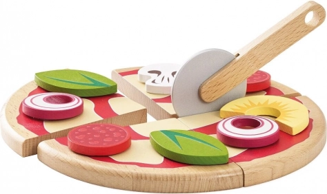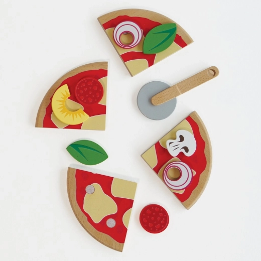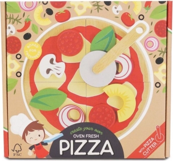 • Contenu du set : 4 parts de pizza, assortiment coloré d’ingrédients, coupe-pizza en bois, boîte.