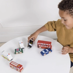 Ces jouets sont conçus de manière éthique et respectueuse de la planète : le bois certifié FSC® et les peintures à l’eau non toxiques garantissent un amusement sûr au quotidien. Le coffret complète à merveille les garages et circuits de trains en bois, permettant aux enfants de créer facilement une ville entière pleine d’histoires.