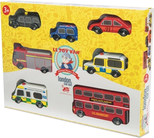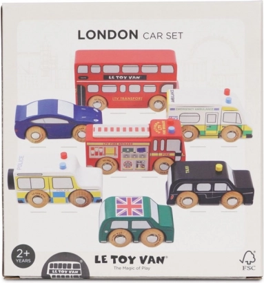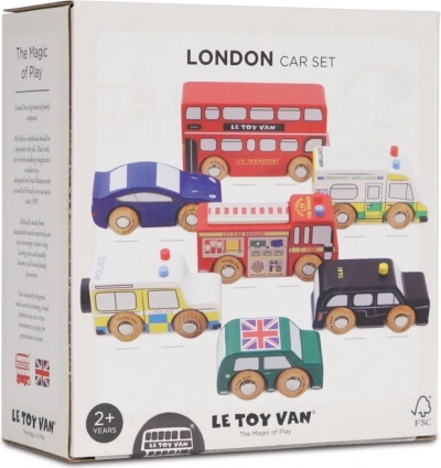 Découvrez l’univers des rues animées de Londres avec des véhicules en bois finement détaillés de Le Toy Van. Le coffret comprend un autobus à impériale, un taxi noir, un camion de pompiers, une ambulance, une voiture de police et deux voitures particulières. La conception robuste en bois d’hévéa durable et les bords lisses sont idéales pour les petites mains, qui développent leur prise, leur coordination œil-main et leur imagination en jouant.