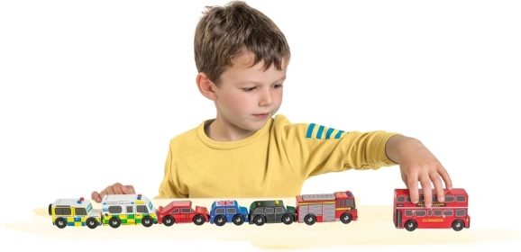 Le coffret s’intègre facilement aux garages et circuits de trains en bois Le Toy Van et d’autres marques. Les enfants peuvent ainsi construire leur propre ville pleine d’action et d’amusement.