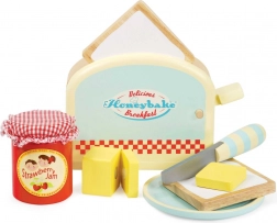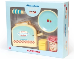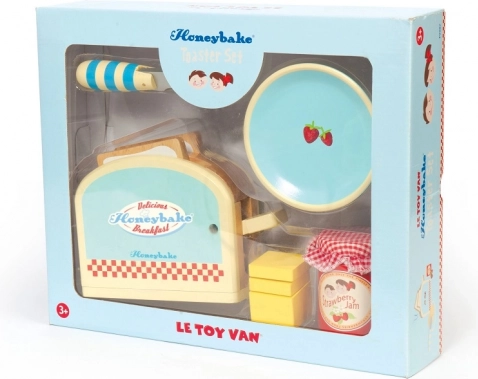 Offrez aux enfants des rituels matinaux magiques avec le set en bois LE TOY VAN Honeybake. Un grille-pain à ressort stylé, des tranches de pain, du beurre avec scratch, de la confiture, un couteau et une assiette favorisent le jeu imaginatif, la motricité fine et les compétences sociales. Fabriqué en bois durable et peint avec des peintures non toxiques.