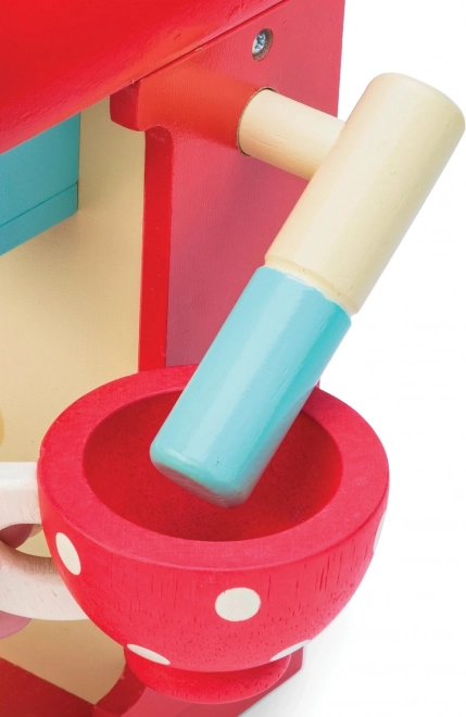 Insérez les capsules en bois dans la manette, « faites couler » le café dans la tasse et jouez aux vrais baristas. Les éléments interactifs stimulent l’imagination et la motricité fine.