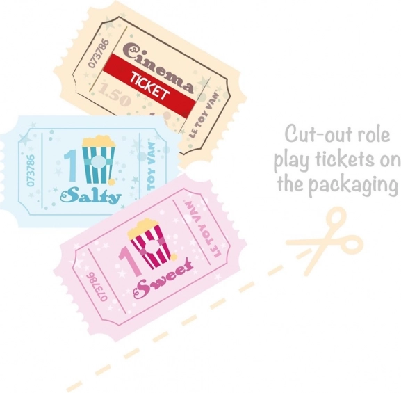 Entrez dans l’univers du cinéma à la maison avec une machine à pop-corn finement détaillée qui illuminera toute chambre d’enfant. L’association de bois massif de qualité, d’un levier fonctionnel pour « popper » et d’accessoires tels que des grains de pop-corn en feutre, un tiroir et une boîte rayée plonge les enfants dans le jeu pendant des heures. Sont également inclus des billets de cinéma et des cartes sucré/salé pour un jeu de rôles encore plus riche.