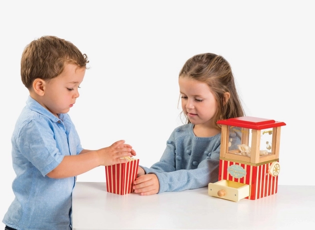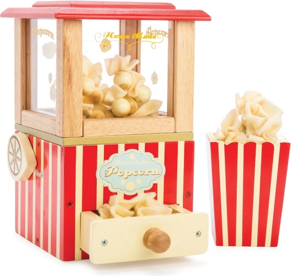 Transformez votre maison en cinéma avec la magique machine à pop-corn en bois de LE TOY VAN. Cet ensemble vintage au design rouge et crème encourage le jeu imaginatif, renforce la motricité fine et favorise le développement du langage. Grâce au mécanisme à levier pour « popper », à 5 grains de pop-corn en feutre, à un tiroir et à une boîte à pop-corn, le jeu est réaliste et extrêmement amusant. Fabriqué en bois durable, peint avec des peintures à base d’eau non toxiques et testé selon les normes les plus strictes.