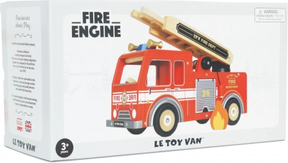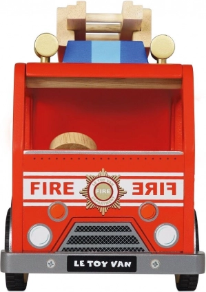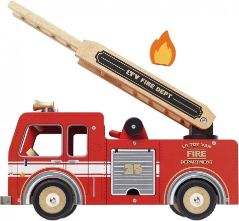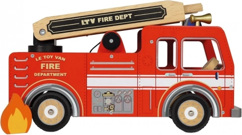 Camion de pompiers en bois LE TOY VAN avec échelle extensible et tuyau. Matériaux durables, peintures non toxiques, sans plastique. Idéal pour le jeu imaginatif.