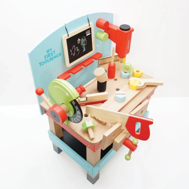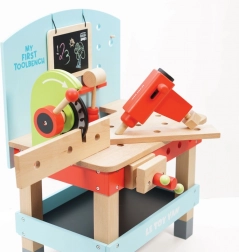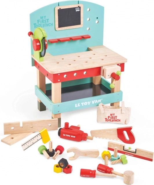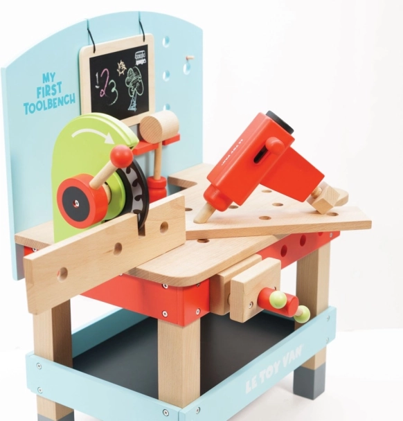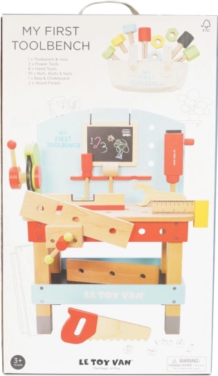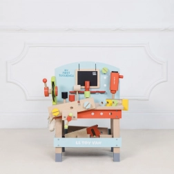 « Mon premier établi avec outils » est idéal pour les petits bricoleurs désireux d'explorer le monde des outils et des ateliers. Ce jouet est fabriqué en bois FSC de haute qualité, assurant à la fois durabilité à long terme et respect de l'environnement. Il contient 20 pièces, y compris une perceuse, une scie circulaire, un étau, une scie, un marteau, un tournevis et bien d'autres outils. Il y a aussi un tableau pour craie pour l'expression créative.