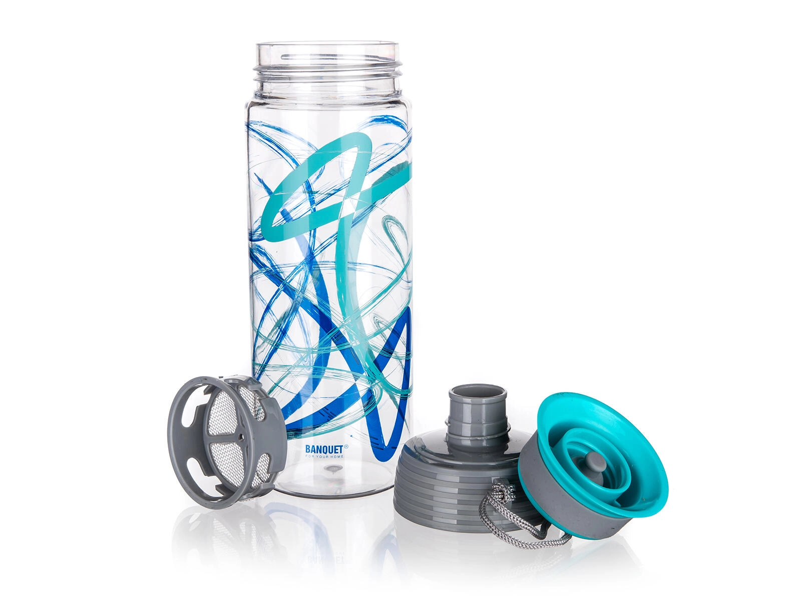 Bouteille d’eau pratique et élégante en matériau résistant TRITAN d’une capacité de 550 ml, idéale pour l’hydratation quotidienne à la maison, au travail et pendant le sport. Elle offre un bouchon vissé étanche avec embout de boisson confortable, un filtre en inox pour fruits, herbes ou glaçons, et une conception sans BPA au design turquoise moderne.