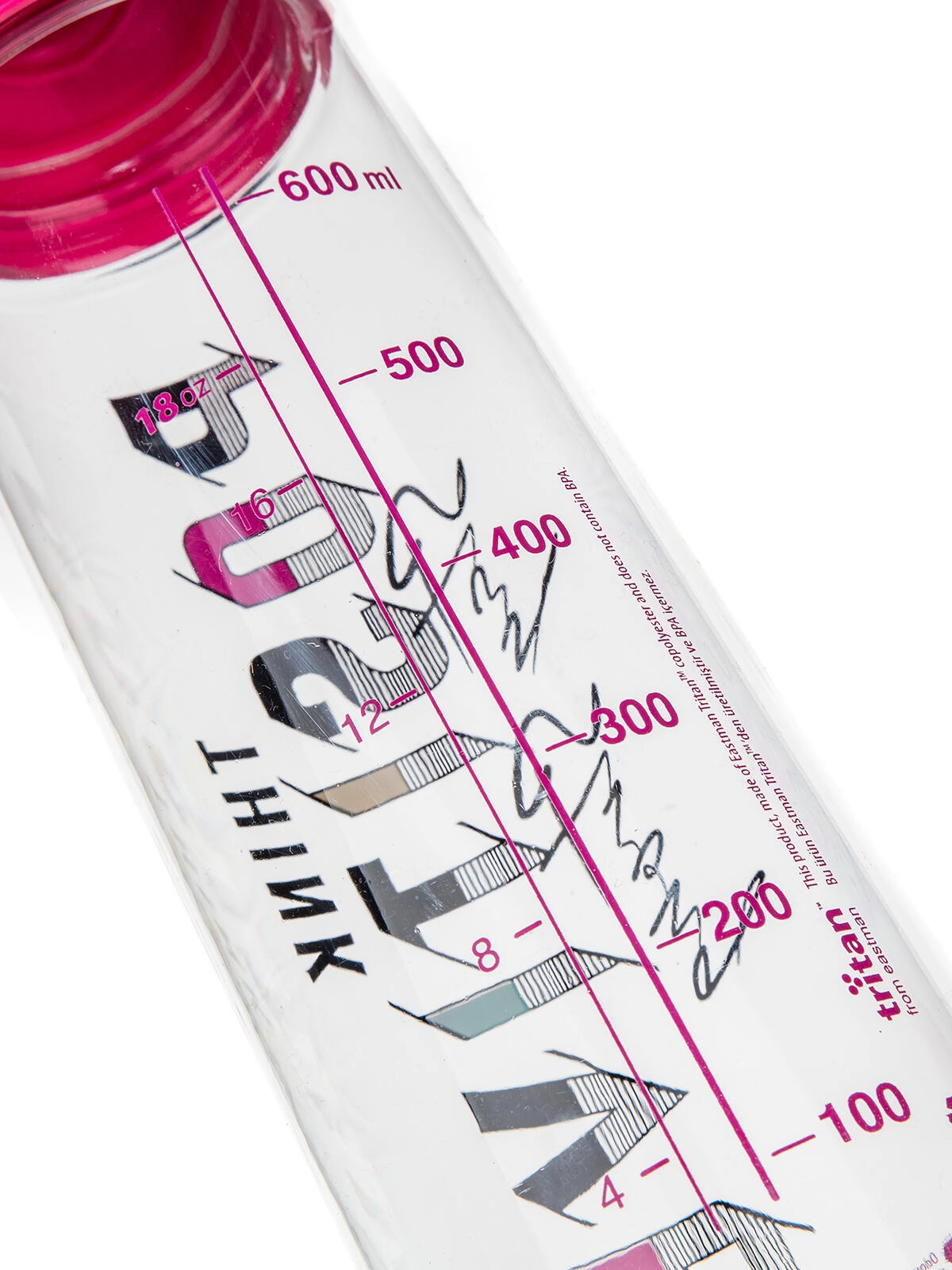 Une échelle précise aide à suivre l’apport quotidien en liquides, tandis que l’imprimé rose YOGA apporte fraîcheur et style sportif.