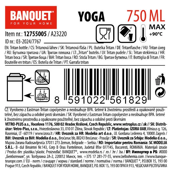 La conception transparente avec motif YOGA rose et repères bien visibles vous permet de suivre votre consommation quotidienne. Le tritan convient aux boissons froides comme chaudes, est inodore et hautement résistant aux chocs – un choix idéal pour un style de vie actif.