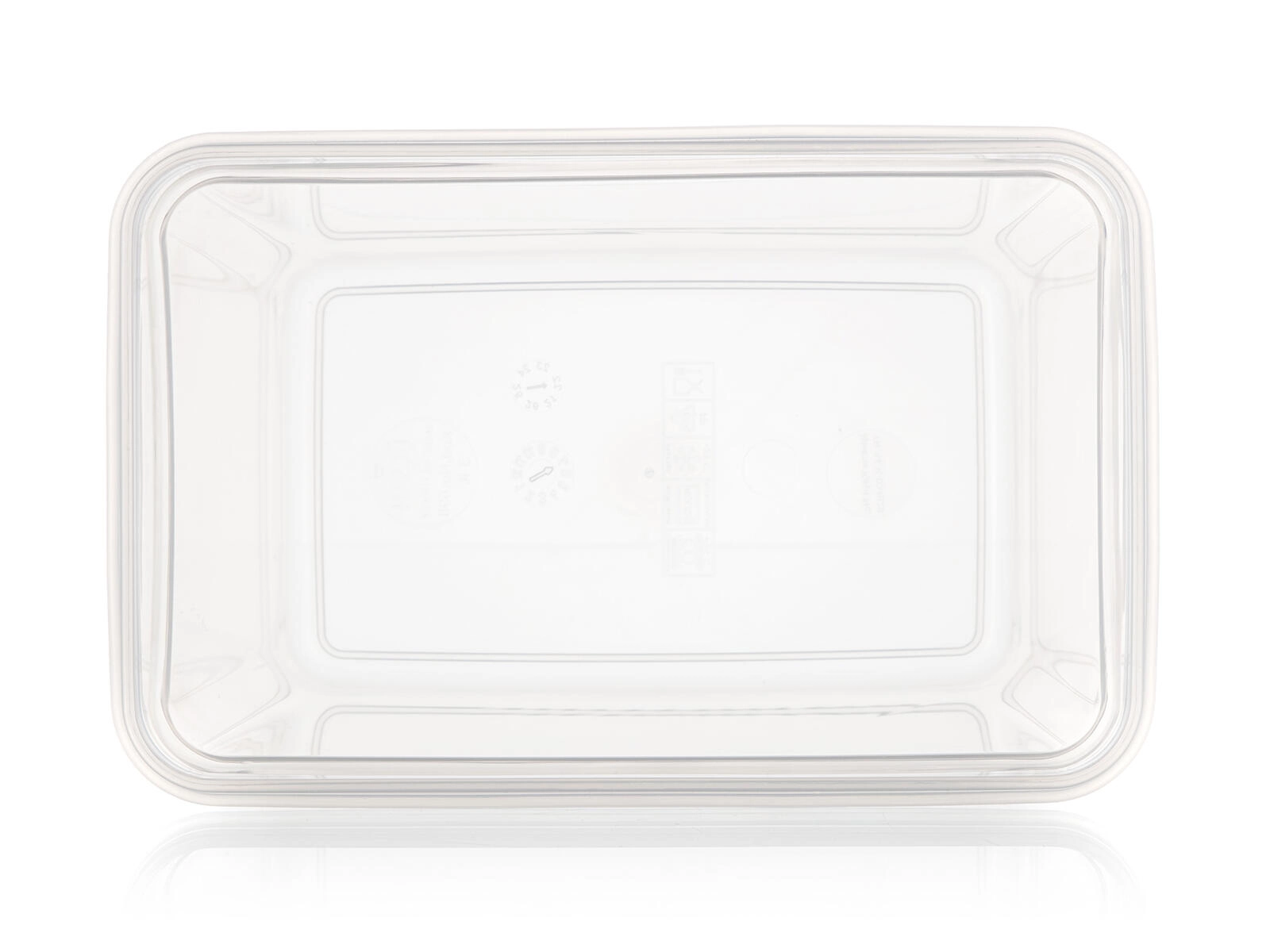 Les parois transparentes permettent de voir instantanément le contenu, tandis que la forme rectangulaire économise de la place au réfrigérateur comme au congélateur.
