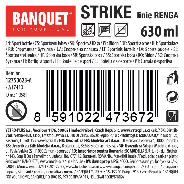 La gourde de sport Strike rose au volume de 630 ml est idéale pour l’hydratation quotidienne à l’école, au travail et pendant le sport. Grâce à sa forme ergonomique et à sa surface texturée, elle tient parfaitement en main, le bouchon flip-top permet de boire facilement d’une seule main et le large goulot facilite le remplissage et le nettoyage. Fabriquée en matière plastique résistante. Non adaptée aux boissons chaudes.