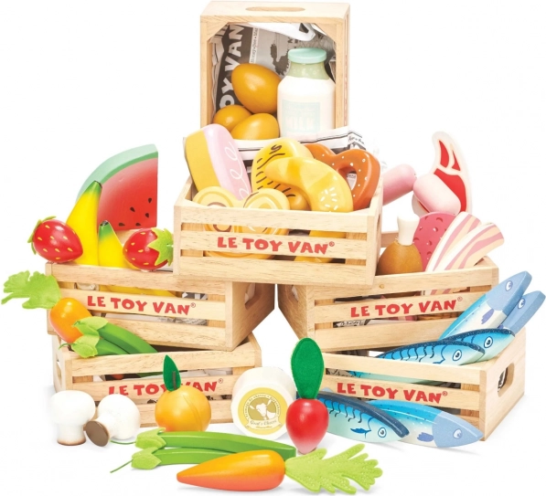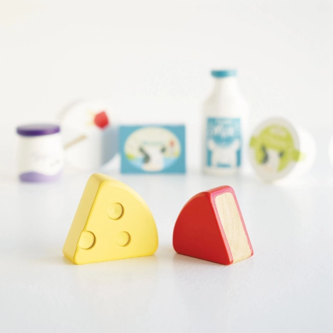 Cette caisse en bois avec produits laitiers de la marque Le Toy Van est idéale pour les enfants qui aiment jouer à la marchande ou à la cuisine. Le set comprend une bouteille de lait, du beurre, du yaourt, de la crème et trois types de fromages, chaque élément étant conçu pour sembler réaliste. Ces jouets sont non seulement amusants, mais aussi éducatifs car ils aident les enfants à comprendre l'importance d'une alimentation équilibrée.