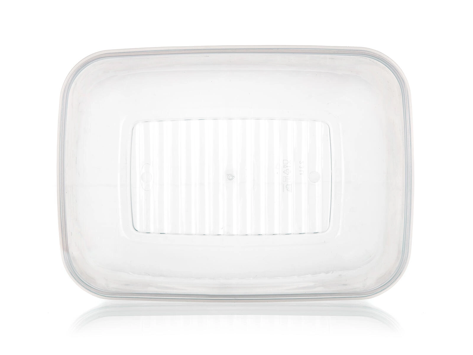 Le joint en silicone turquoise et les quatre clips latéraux assurent une fermeture fiable et étanche – les aliments restent frais plus longtemps et sans odeurs dans le réfrigérateur ou le sac.
