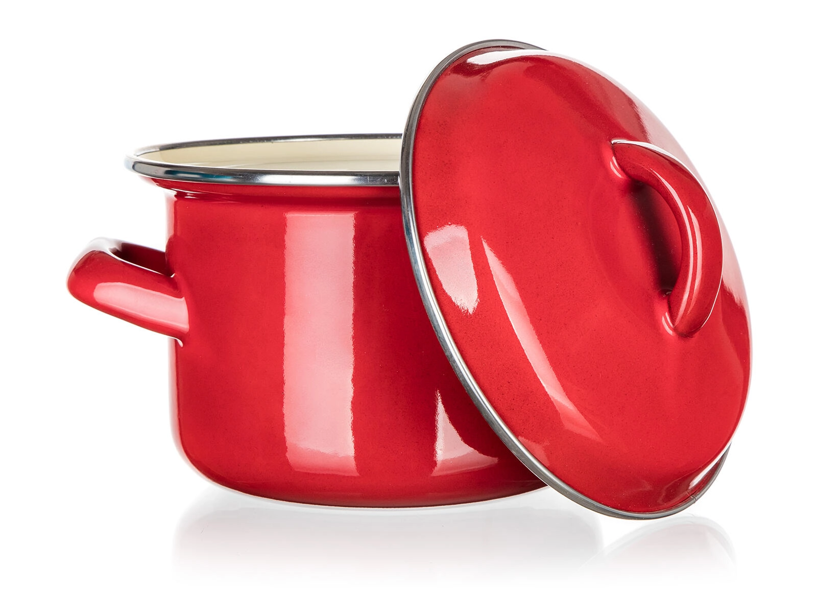 Petite casserole émaillée avec couvercle d’une capacité de 0,78 l et d’un diamètre de 12 cm, idéale pour les petites portions, les sauces ou le réchauffage. La glaze émaillée résistante de couleur rouge, l’intérieur crème et le fond universel pour tous types de plaques, y compris l’induction, garantissent une cuisson aisée et une longue durée de vie.