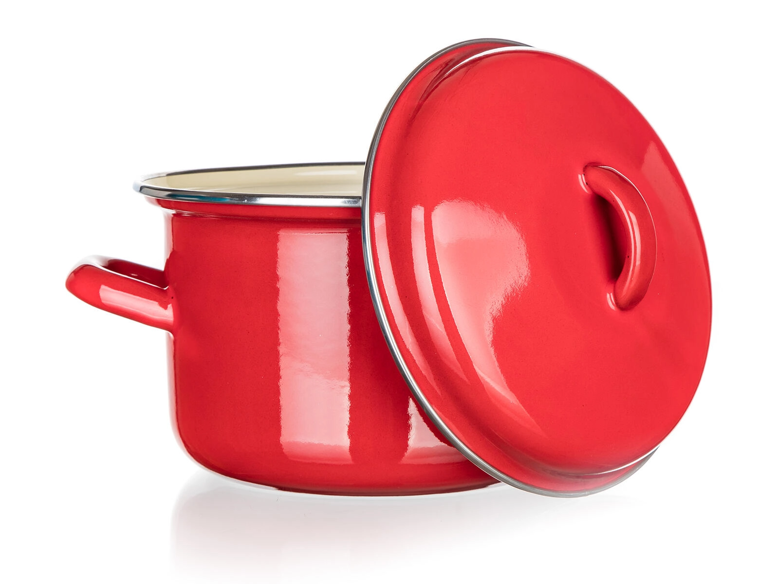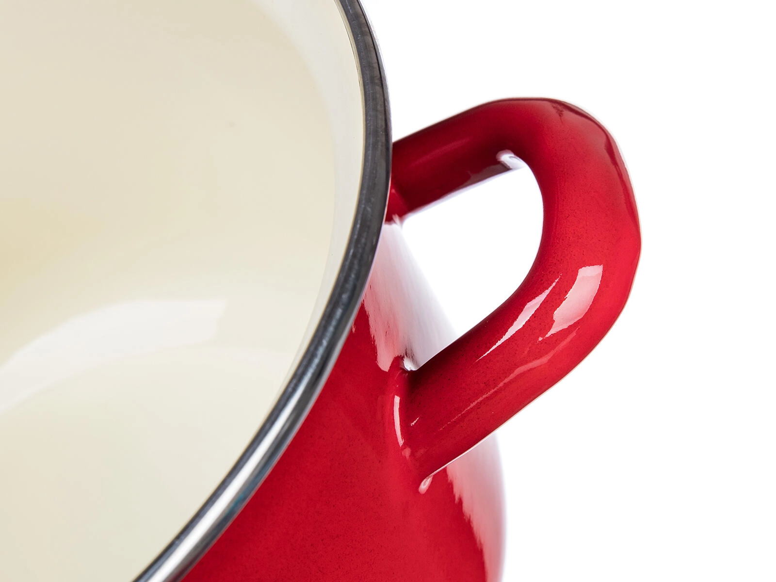 L’émail rouge à l’extérieur et l’intérieur crème résistent aux taches et facilitent l’entretien. La surface est lisse, hygiénique et stable en couleur.