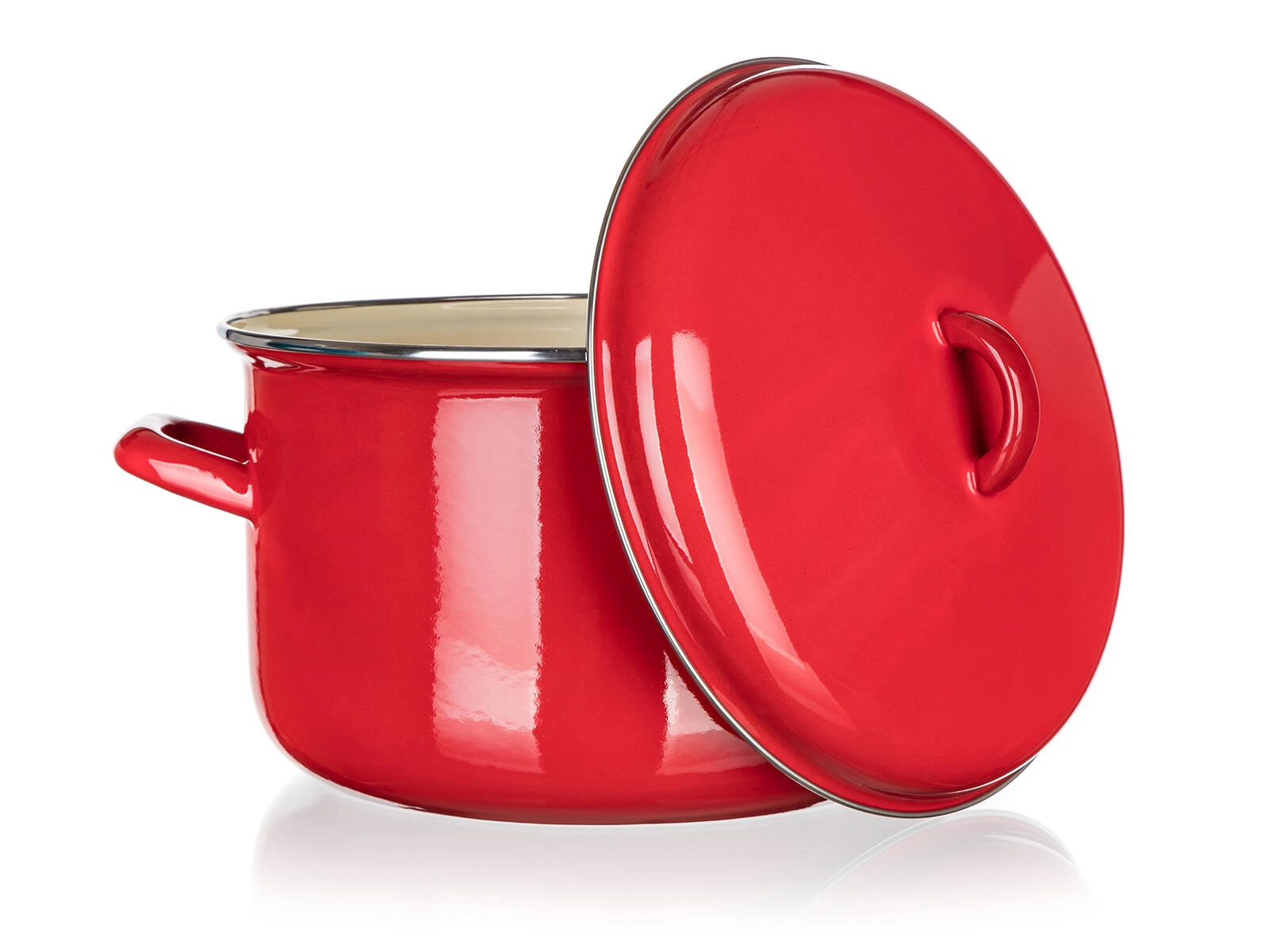 Élégante marmite MILTON rouge avec couvercle, alliant le look classique de l’émail à des atouts pratiques pour la cuisine quotidienne. Grâce à son volume de 5,9 l, vous préparez aisément de plus grandes portions de soupes, bouillons ou plats mijotés. L’intérieur crème facilite le contrôle du degré de cuisson et le nettoyage.