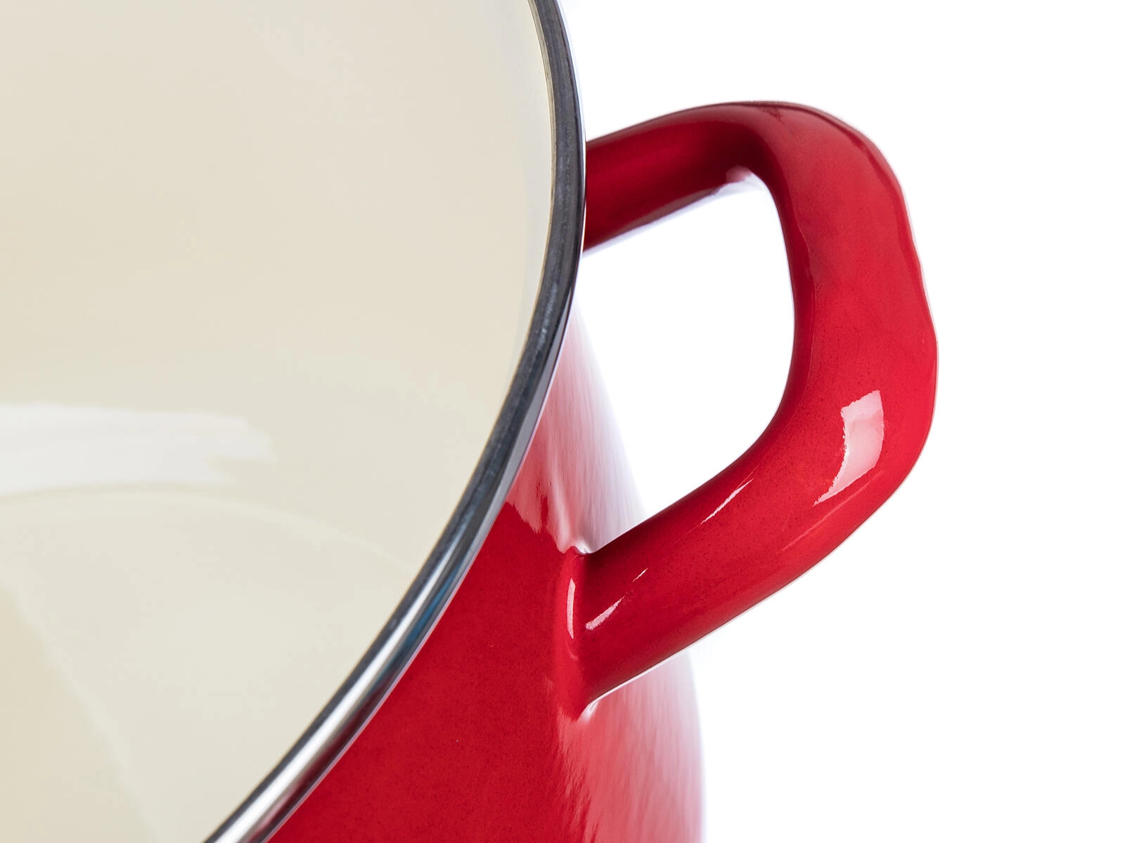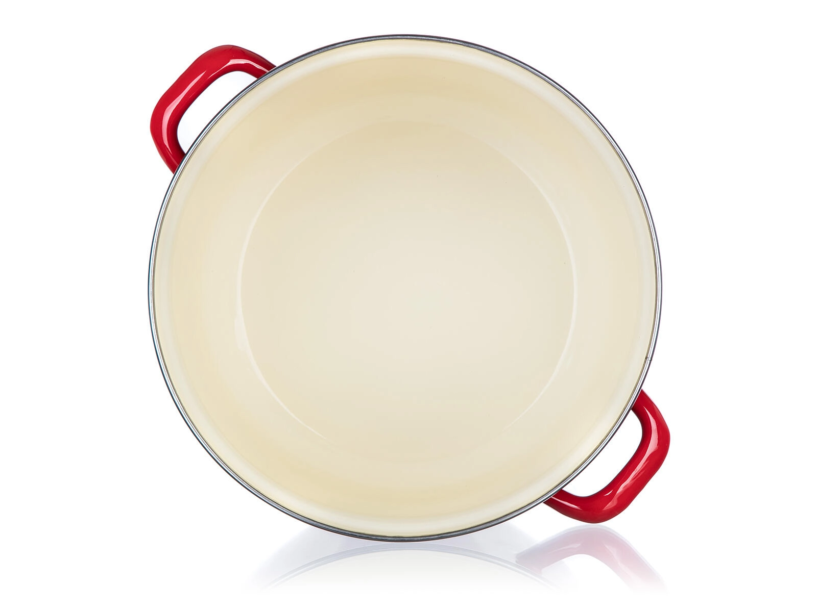 La glaçure émaillée rouge avec intérieur crème résiste aux taches et se nettoie facilement. Idéale pour un usage quotidien.