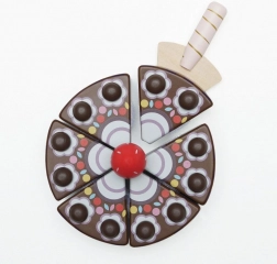 Ce gâteau au chocolat stylé de la collection Honeybake est idéal pour la cuisine ou la pâtisserie des enfants. Les six parts solides reliées par velcro se découpent facilement avec la pelle fournie et se partagent entre amis – une excellente occasion d’entraîner le partage et les compétences sociales.
