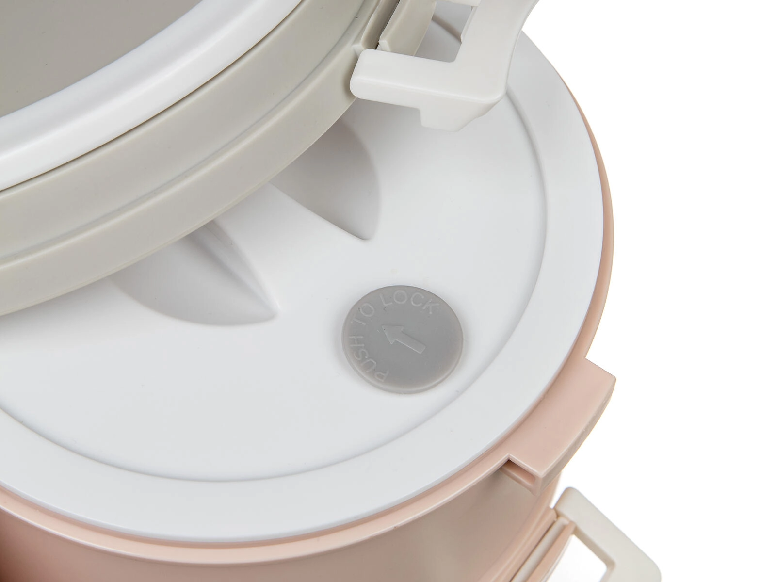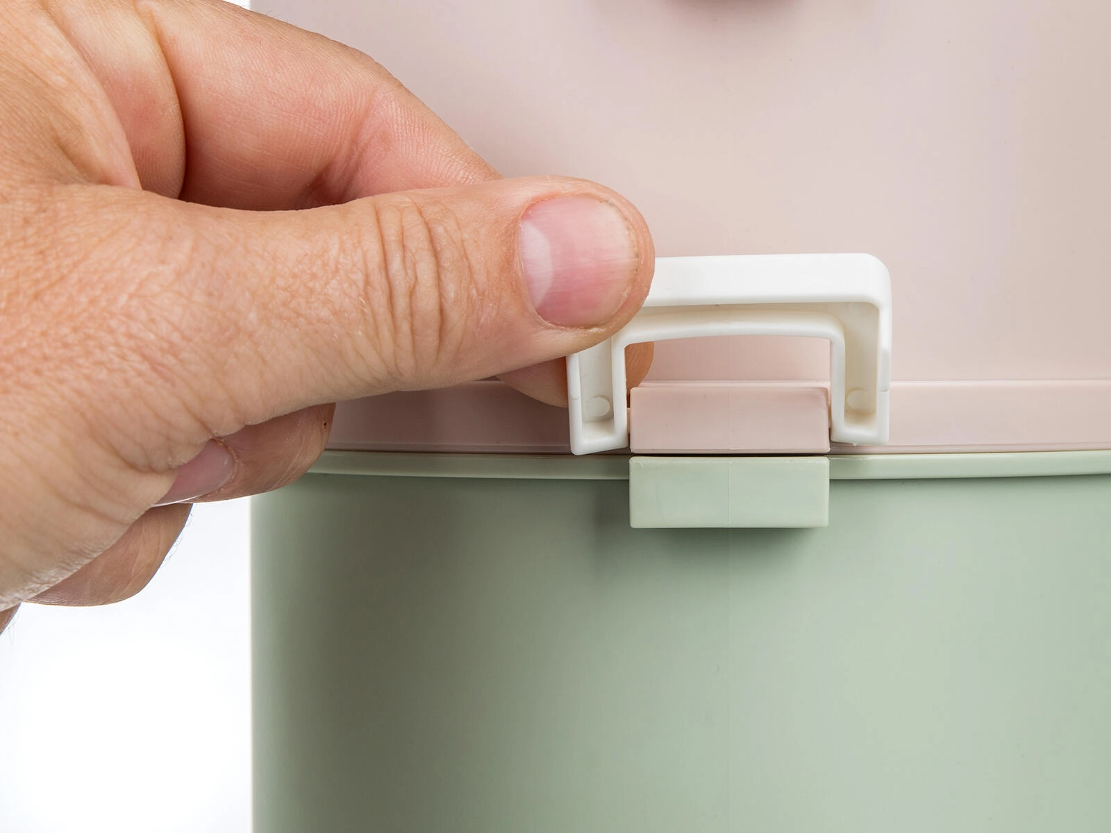 Le couvercle supérieur avec poignée robuste et clips latéraux maintient les étages fermement ensemble, ce qui permet de transporter le portoir à repas facilement et en toute sécurité.
