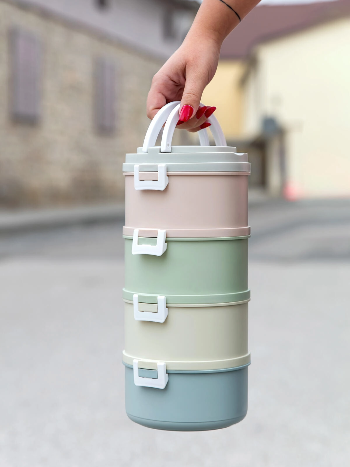 Quatre boîtes indépendantes pour une répartition claire des plats. Les étages peuvent être combinés librement et utilisés séparément au réfrigérateur, au congélateur et au micro-ondes.