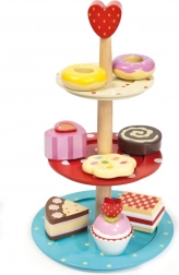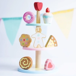 Le présentoir à pâtisseries à étages de Le Toy Van est le jouet idéal pour vos enfants. Chaque niveau propose des pâtisseries colorées, comme des donuts et des cupcakes, qui stimulent l’imagination et la créativité. La sécurité est assurée par des bords arrondis et l’utilisation de peintures non toxiques à base d’eau.