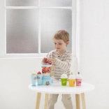 Ce set en bois stylé de la collection Honeybake transforme n’importe quelle cuisine d’enfant en bar à smoothies. Les enfants peuvent “couper” les fruits en toute sécurité grâce au velcro, remplir le bol du mixeur et servir de délicieuses boissons dans deux gobelets avec paille. Les détails réalistes encouragent les jeux de rôle, le développement de la motricité fine et des compétences cognitives.