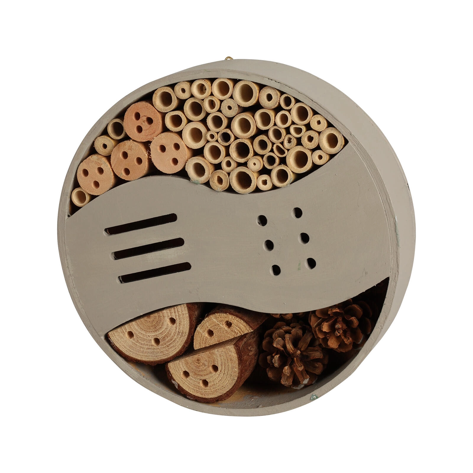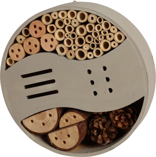 Le design mêlant les couleurs grise et verte s’intègre facilement à l’extérieur. Installez-le dans un endroit ensoleillé et à l’abri du vent, à une hauteur d’au moins 1 à 2 mètres du sol, afin d’offrir aux insectes un refuge calme tout au long de l’année.