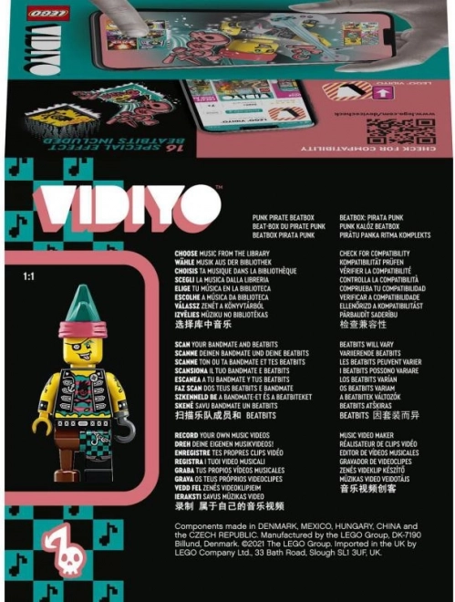 Le set punk pirate BeatBox LEGO VIDIYO transforme les enfants en réalisateurs, producteurs et stars de leurs propres clips. Il suffit de télécharger l’application, de scanner la minifigurine du pirate et les BeatBits pour accéder à une multitude d’effets, de défis et de mouvements de danse. Le BeatBox peut être décoré avec des pièces LEGO – suivez le modèle pour créer un motif d’ancre, de coffre au trésor ou de navire pirate, ou concevez votre propre style.