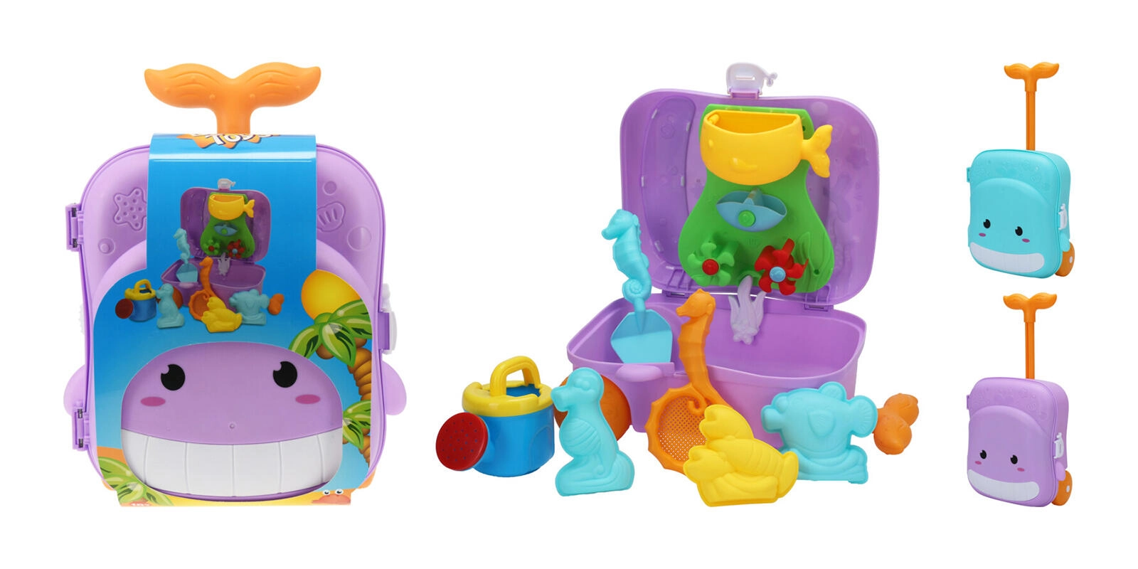 Faites plaisir aux enfants avec un ensemble pratique pour le sable dans une mallette compacte. Grâce au rangement astucieux, aucune pièce ne se perd et tout reste bien ordonné au même endroit. Idéal pour les vacances, le terrain de jeux et la plage.