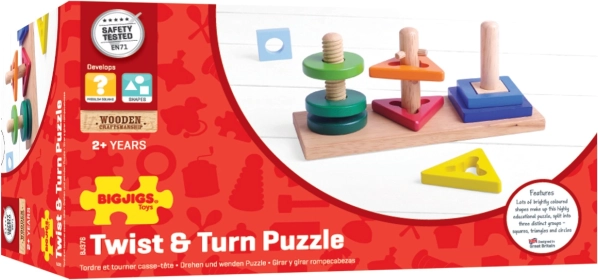 Ce jouet en bois astucieux motive les enfants à explorer. Les pièces se placent sur trois chevilles différentes, certaines nécessitant une rotation ou une orientation précise. Les enfants entraînent ainsi naturellement l’agilité des doigts, la patience et la représentation spatiale.