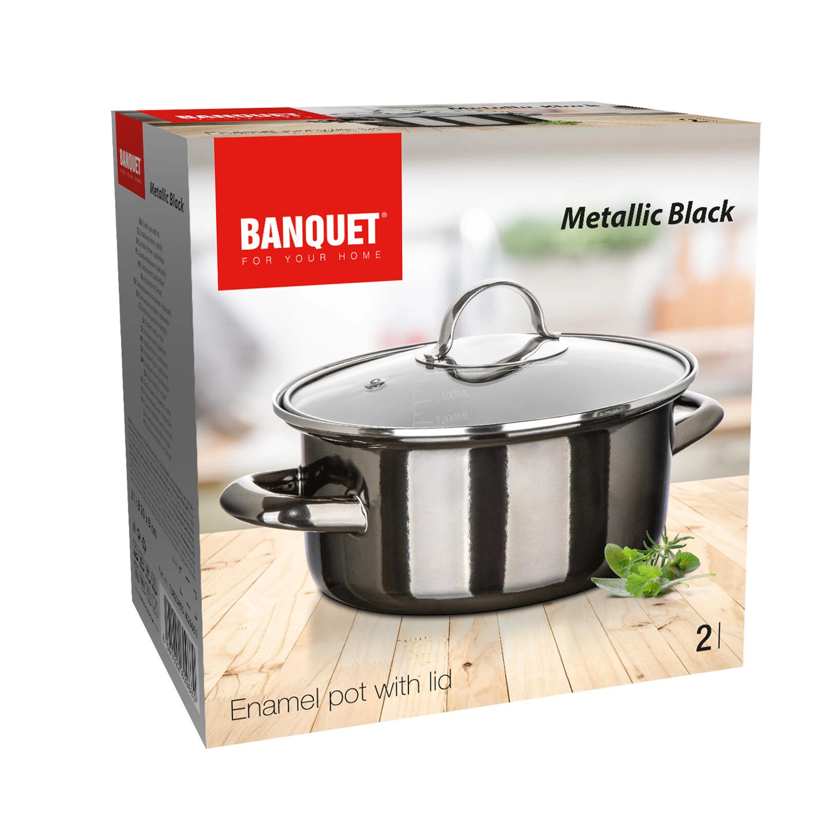 Élégante casserole émaillée en finition Metallic Black d’une capacité de 2 litres et d’un diamètre de 20 cm, idéale pour la cuisine quotidienne. Grâce à son couvercle en verre, vous gardez un œil sur la cuisson ; la finition émaillée résistante assure une longue durée de vie et la compatibilité avec tous les types de plaques, y compris l’induction, offre une polyvalence maximale.