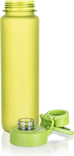 Restez hydraté à la maison, au travail et pendant le sport. La bouteille verte KIWU de 1000 ml est fabriquée en plastique hautement résistant, conçu pour une utilisation quotidienne et des conditions plus exigeantes. Le large goulot facilite le remplissage et le nettoyage, tandis que le couvercle étanche empêche toute fuite indésirable dans votre sac ou sac à dos.