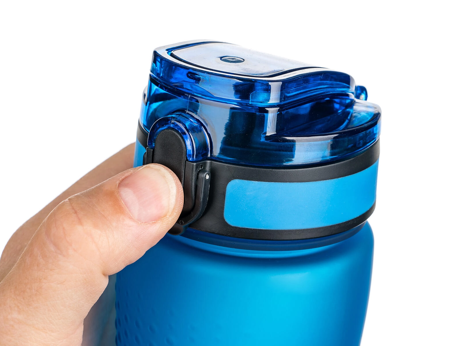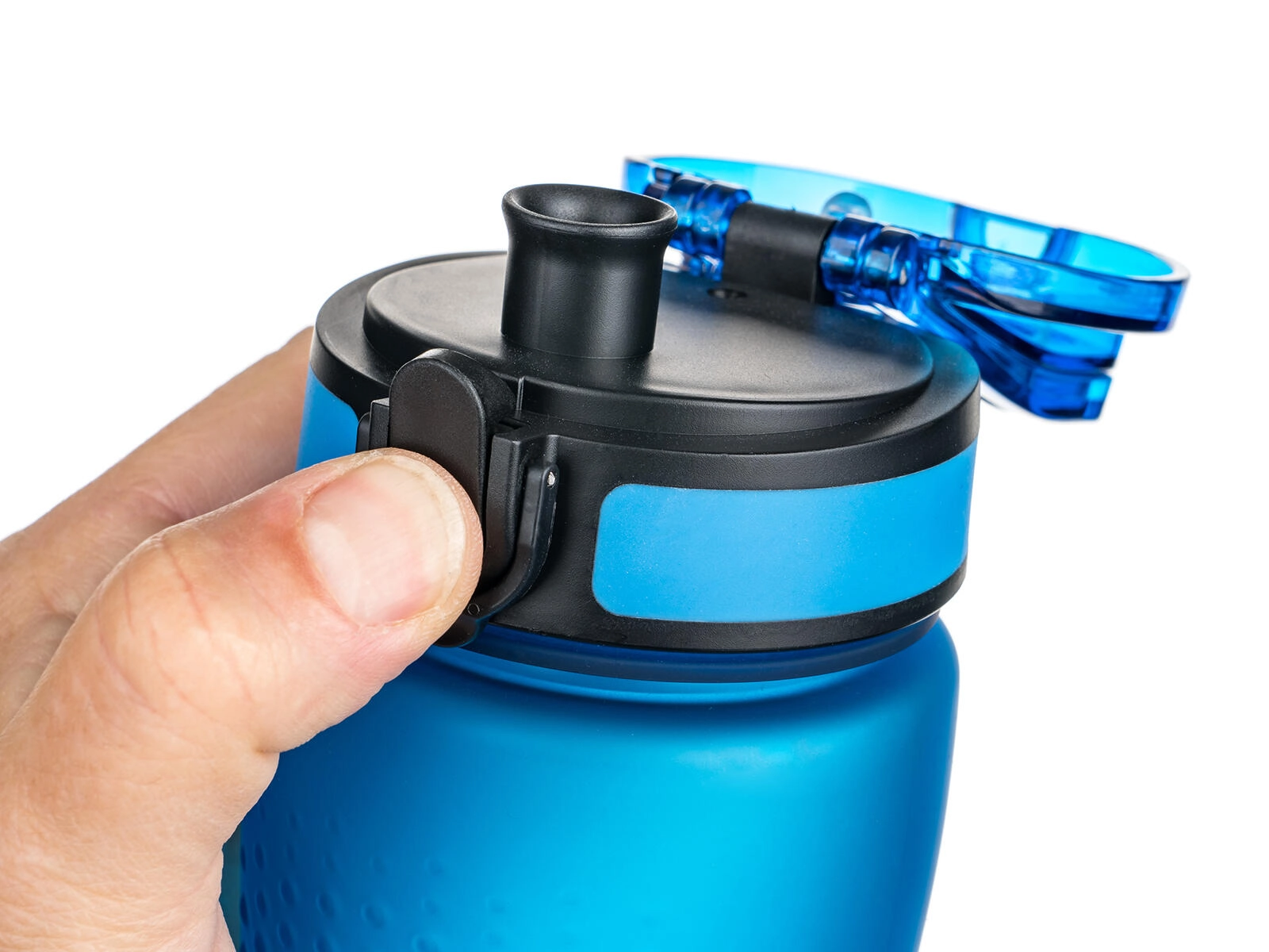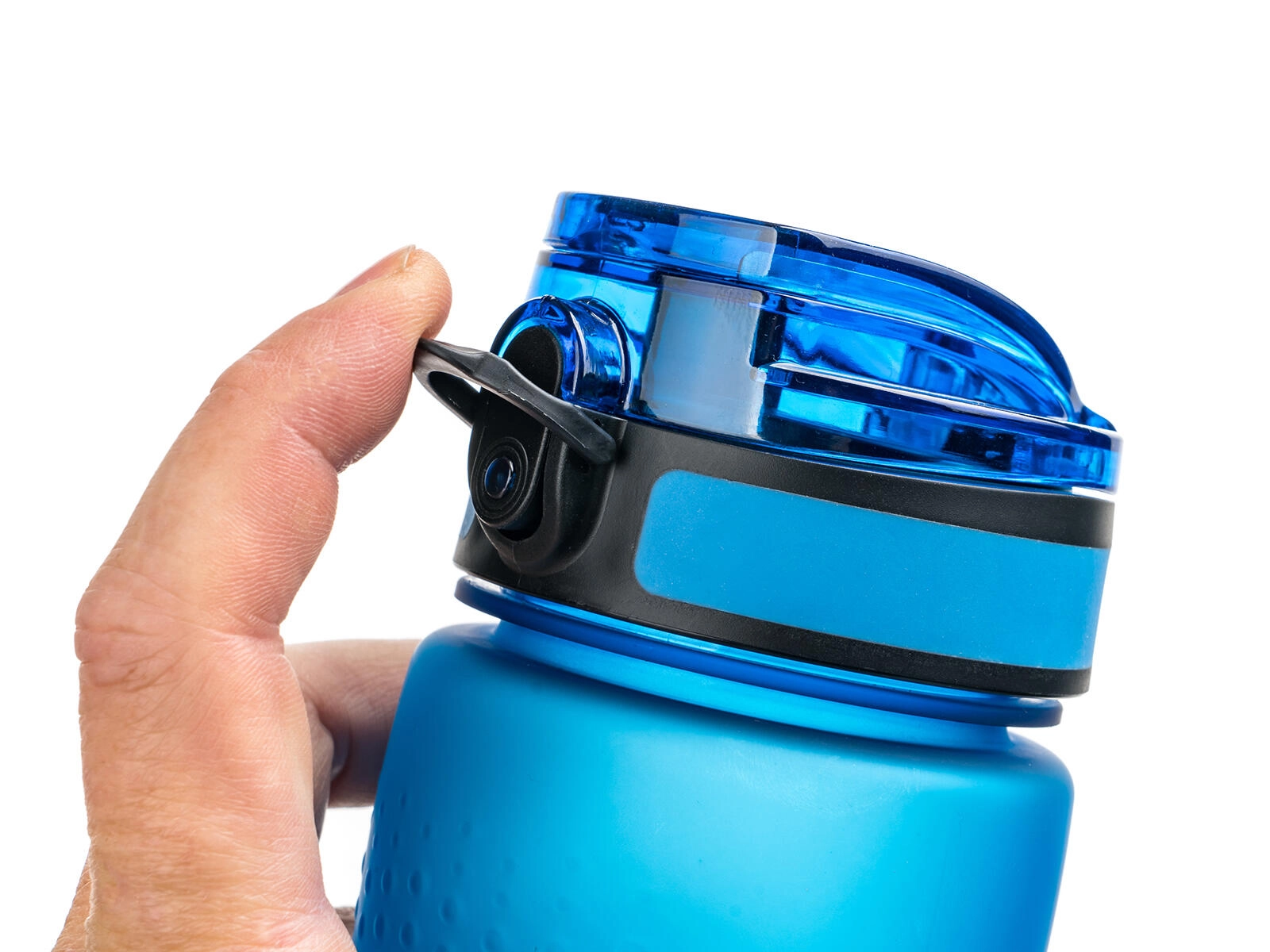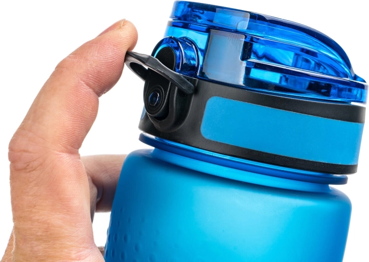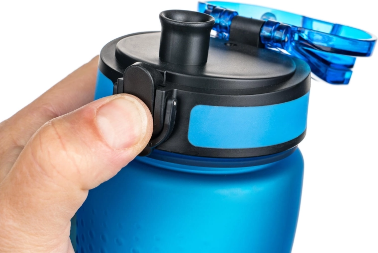 Le couvercle à bascule avec sécurité empêche l’ouverture involontaire dans le sac à dos et maintient la bouteille 100 % étanche, même en mouvement.