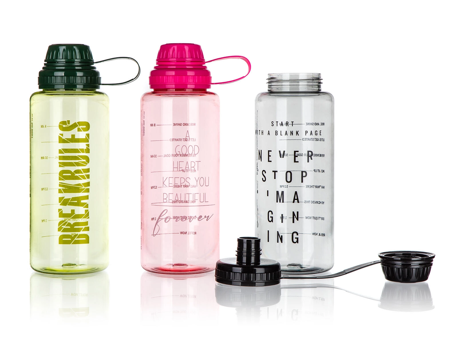 Des graduations pratiques et des messages motivants aident à suivre votre apport hydrique. Design stylé en assortiment de couleurs et de décors.