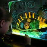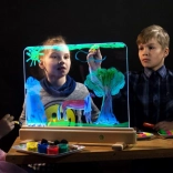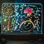 L’éclairage LED intégré transforme chaque dessin en une création lumineuse. Choisissez parmi 16 couleurs, 4 effets dynamiques et réglez la luminosité selon vos besoins – le tout confortablement via la télécommande.