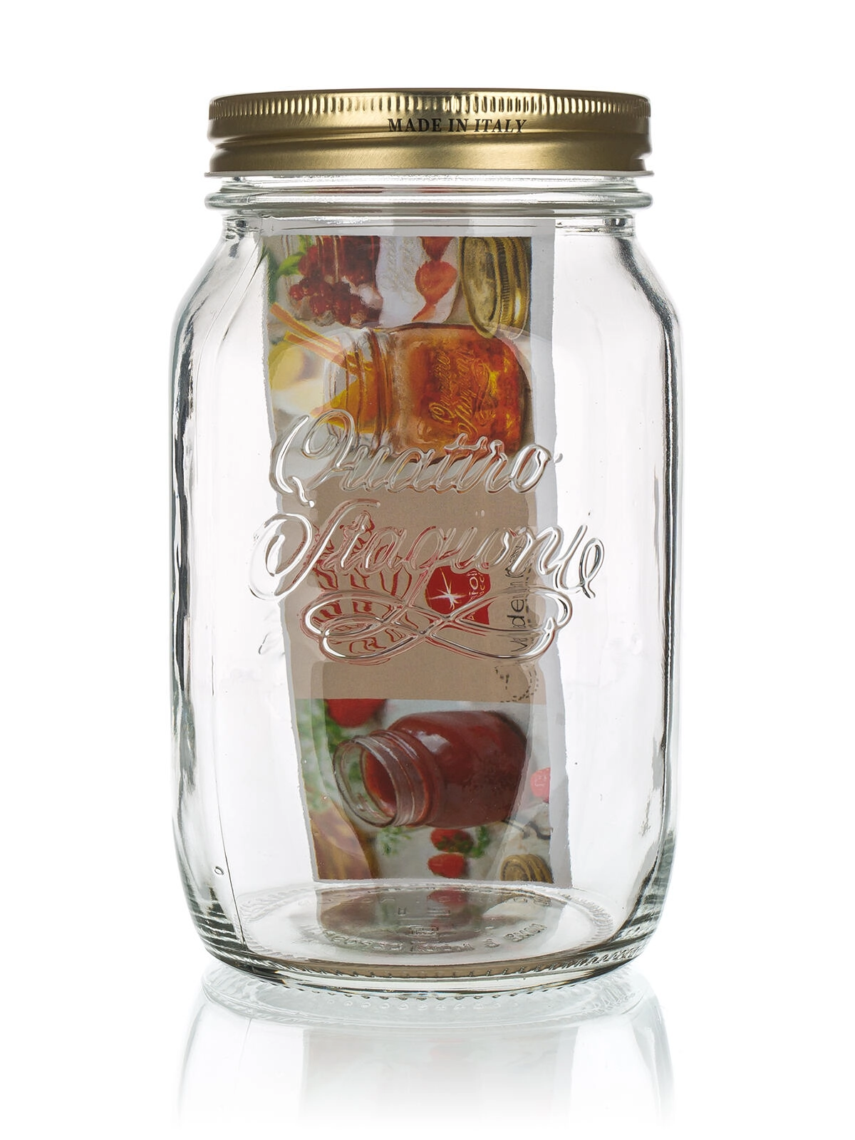 Découvrez une solution universelle pour la conservation et le stockage à la maison. Le bocal en verre Quattro Stagioni avec couvercle métallique protège fiablement confitures, sauces, légumes marinés ainsi que les ingrédients secs. Le verre de qualité est hygiénique, sans odeurs et facile à nettoyer.