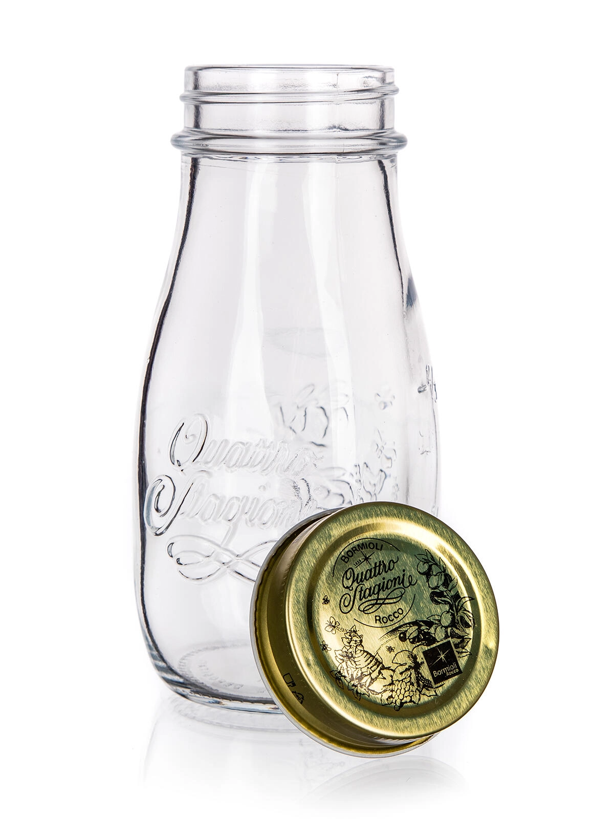 Cette bouteille en verre polyvalente Quattro Stagioni de 400 ml convient parfaitement à chaque foyer. Grâce à son couvercle métallique robuste, elle ferme hermétiquement le contenu et aide à préserver sa fraîcheur. Elle est adaptée non seulement pour stériliser des sauces, des jus ou des sirops faits maison, mais aussi comme bouteille élégante pour les boissons du quotidien.