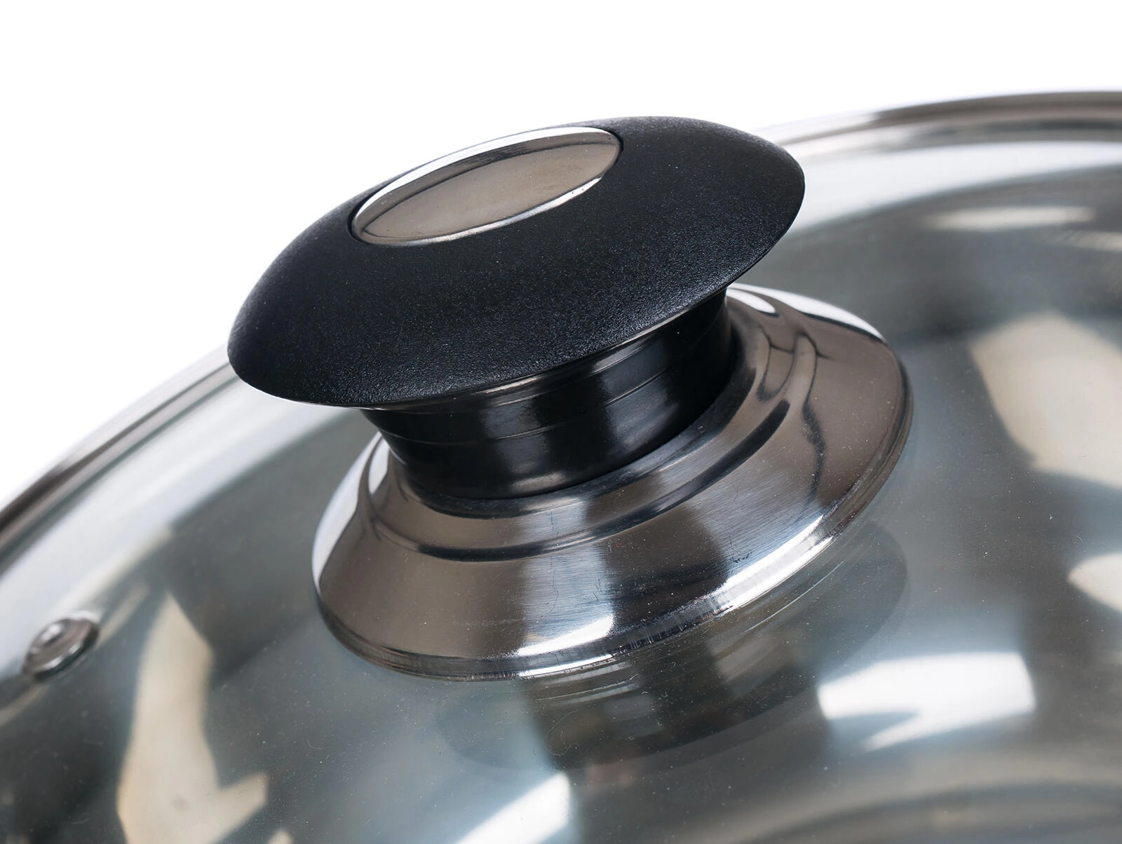 - Couvercles en verre avec valve vapeur : contrôle aisé de la cuisson et conservation des saveurs.