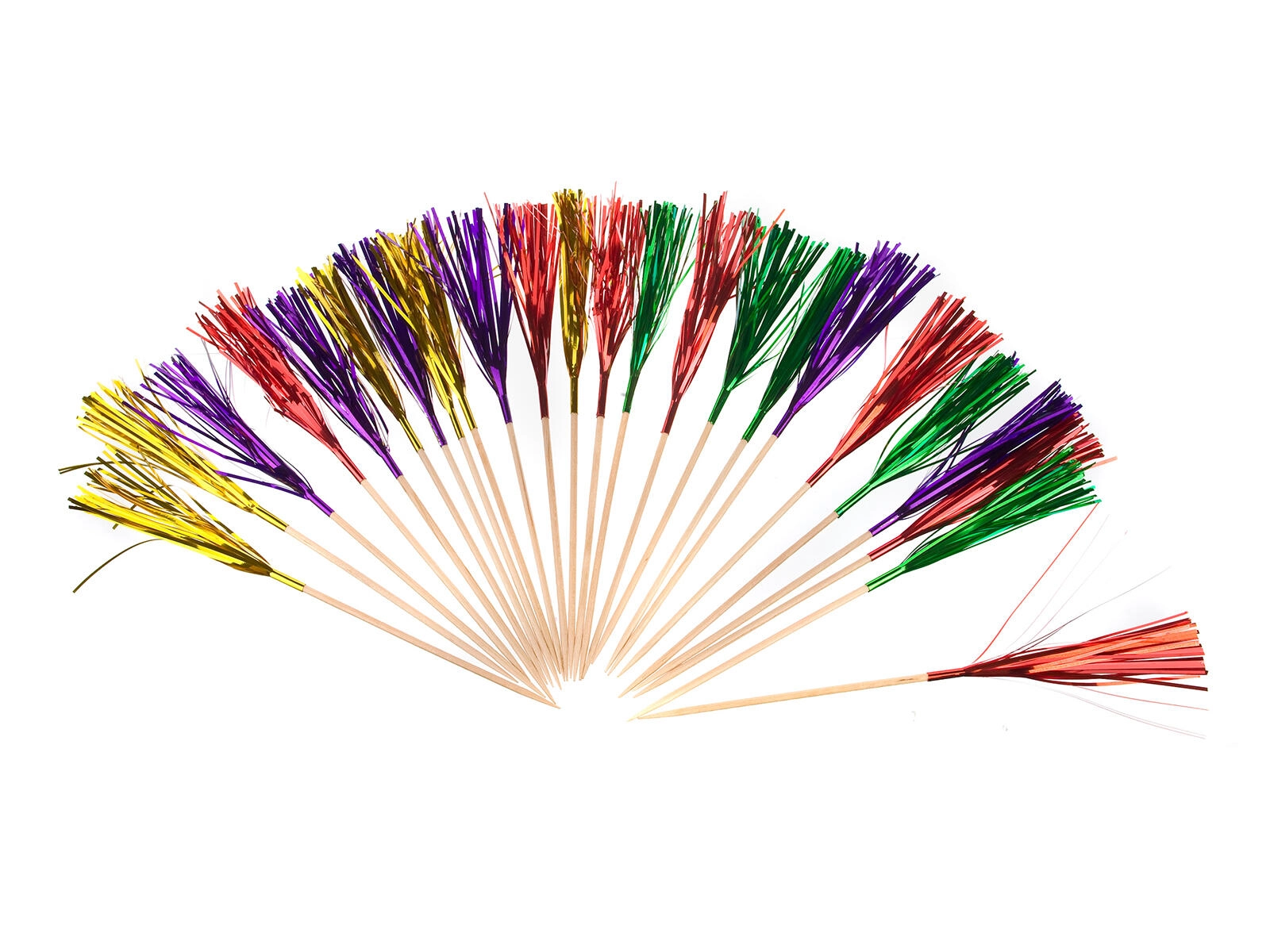 Illuminez votre fête avec ces petites palmes décoratives en lot de 25 pièces. Leurs franges colorées apportent aux boissons, desserts et amuse-bouches un effet fête instantané – idéal pour les anniversaires, fêtes, réveillon et carnaval.