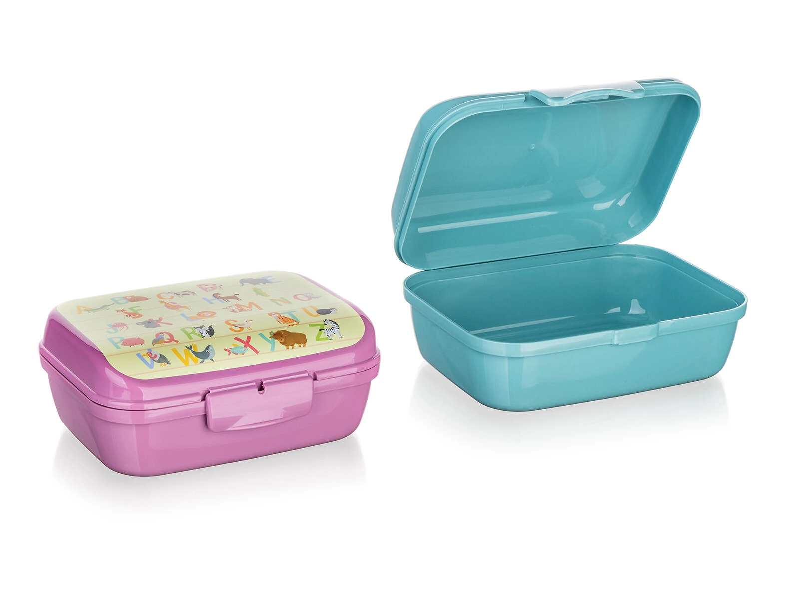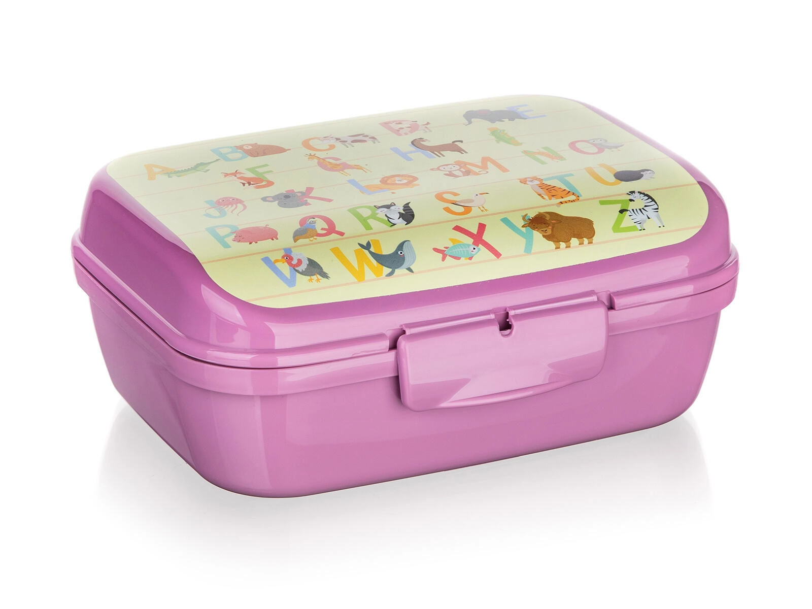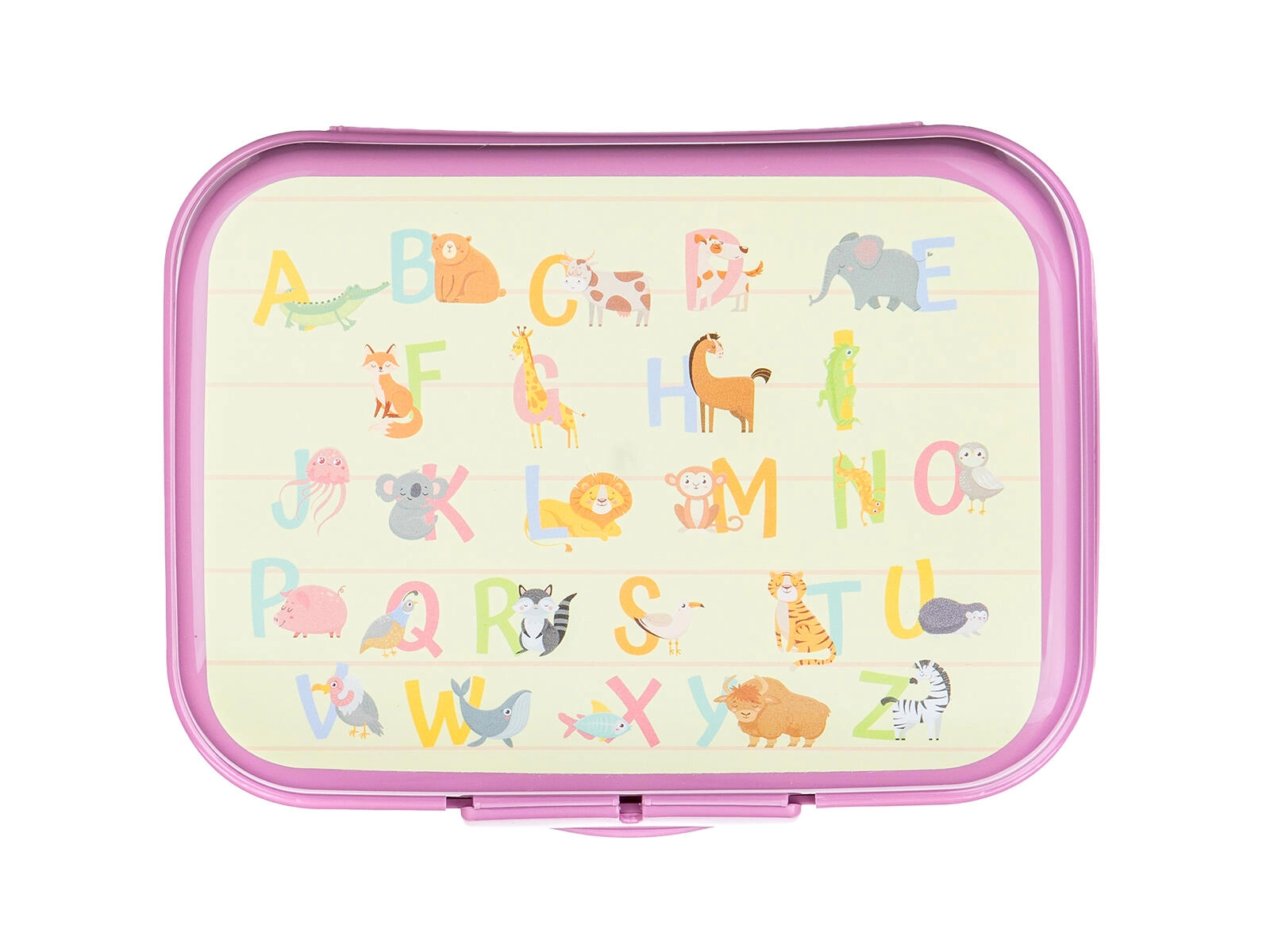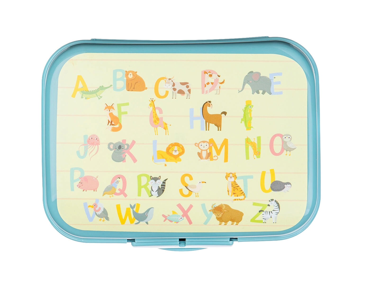 L’alphabet coloré avec des animaux motive les enfants à prendre leur collation et donne à la boîte un look ludique.