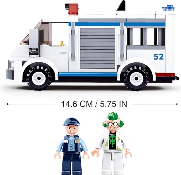 Créez votre propre scène policière avec Sluban police et vivez l’adrénaline de l’évasion du voleur à moto ainsi que l’intervention du fourgon cellulaire. Le set est fabriqué en plastique ABS de haute qualité, durable et sûr, et livré avec une notice claire dans une boîte colorée.