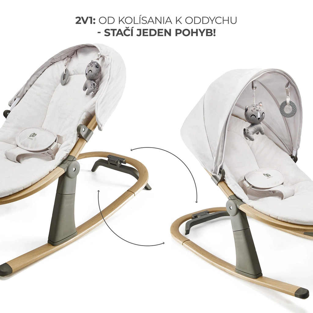 Le transat élégant KINDERKRAFT Elsu Grey est conçu pour le confort quotidien de bébé, de la naissance jusqu’à 9 kg. Grâce au système de blocage astucieux, vous passez facilement d’un doux balancement à un transat stable en un seul mouvement. Les trois positions du dossier assurent un repos agréable et des interactions ludiques, tandis que l’assise moelleuse en matériaux agréables est facile à entretenir : la housse est amovible et lavable à tout moment.