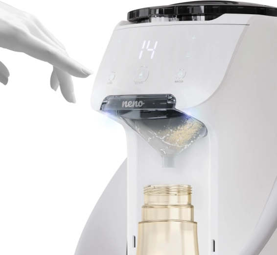 Neno Primavera associe technologie de pointe et simplicité d’utilisation pour vous faire gagner du temps chaque jour et réduire le stress. Le lait est prêt en un instant – il suffit d’ajouter la poudre, de verser de l’eau préalablement bouillie et de lancer. L’appareil chauffe l’eau à la température idéale, prépare la bonne consistance et vous avertit si quelque chose manque.