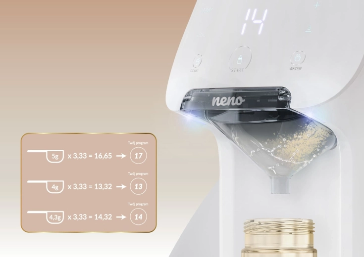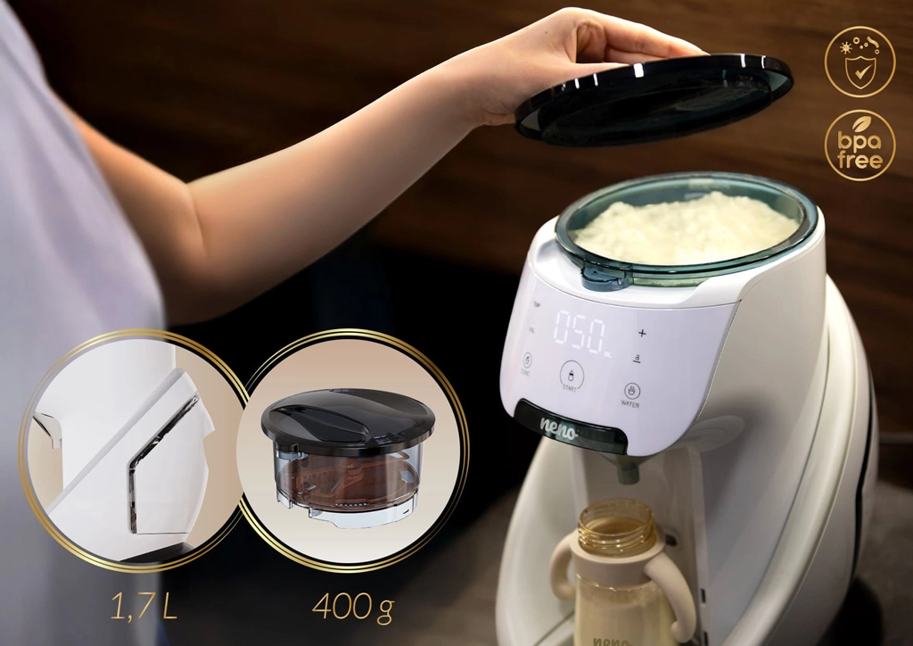 Facilitez chaque tétée avec l’appareil Neno Primavera – un assistant intelligent qui prépare un lait infantile parfait en quelques secondes. Grâce au chauffage rapide de l’eau à 35–70 °C, au mélange automatique sans grumeaux ni bulles et au contrôle tactile intuitif, vous obtenez toujours la température et le volume idéaux. La compatibilité avec la plupart des biberons, les réglages personnels mémorisés et les capteurs de sécurité font de cet appareil un partenaire fiable pour les parents modernes – y compris pour les tétées nocturnes grâce à son éclairage LED.