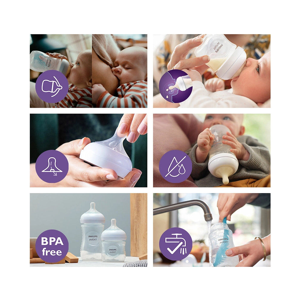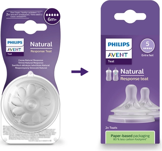 Les tétines Philips Avent Natural Response sont conçues pour se comporter comme le sein. Le lait ne s’écoule que lorsque le bébé tète activement et le flux s’interrompt lorsqu’il fait une pause pour avaler et respirer. Ainsi, le biberon se combine facilement avec l’allaitement et soutient un rythme d’alimentation naturel.